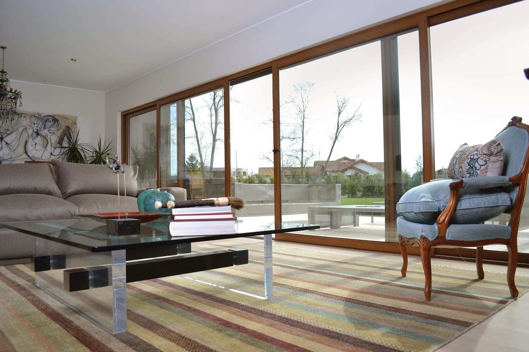 In der Trocal PremiDoor 88 lux, der bewegliche Teil ist ausgestattet mit einem einzigen Flügel, die von außen verglast. Dies führt zu einer Verringerung der visuelle Teil des Flügels, ohne gliding element Verengung. Der visuelle Teil der Flügel ist stark reduziert, und der Anteil von Glas wird stark erhöht werden. Diese Funktion hat sicherlich ein positives Ergebnis auf solare Gewinne, die Werte für den thermischen Schutz werden entsprechend außergewöhnlich und kann erhöht werden, um den Wert von Passivhäusern.