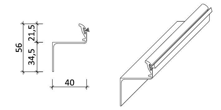 ALU ravne RG-TG sa pokrivnim delom između dve vodilice na sredini u širini od 30 mm
