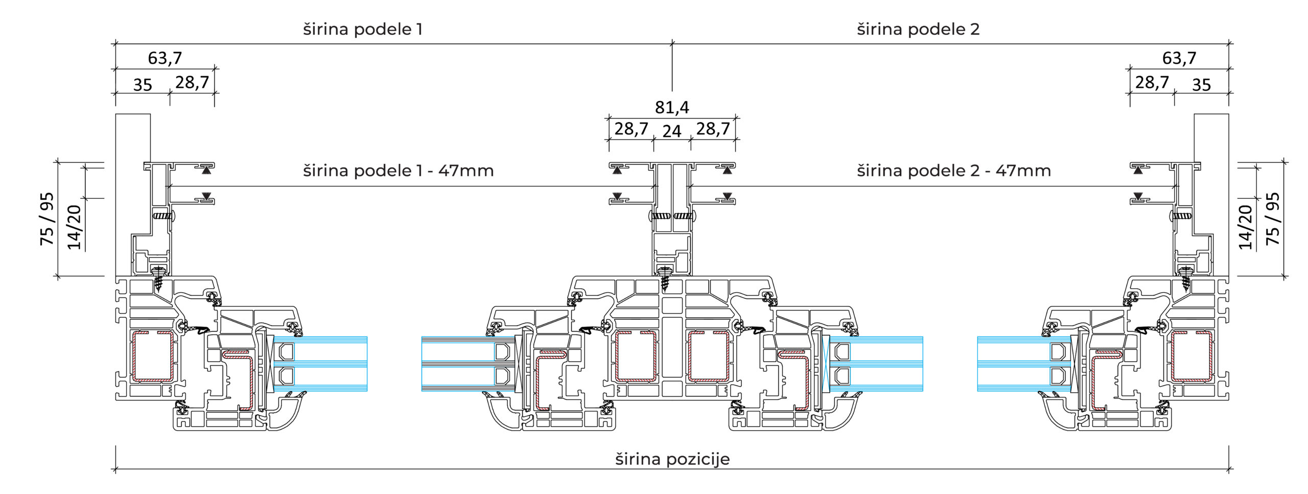 Varijanta RG je apsolutno hermetički zatvorena, jer nema spojeva sa unutrašnje strane. Još jedna posebna karakteristika je ALU RG-TG sistem vodilica. Ovo je termički izolovan sistem koji garantuje nepropusnost između šine vodilica i prozora u kišnim uslovima.