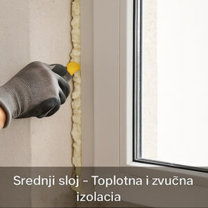 Najčešće se koristi PU pena ili specijalna traka. Obezbeđuje čvrstoću i izolaciju.